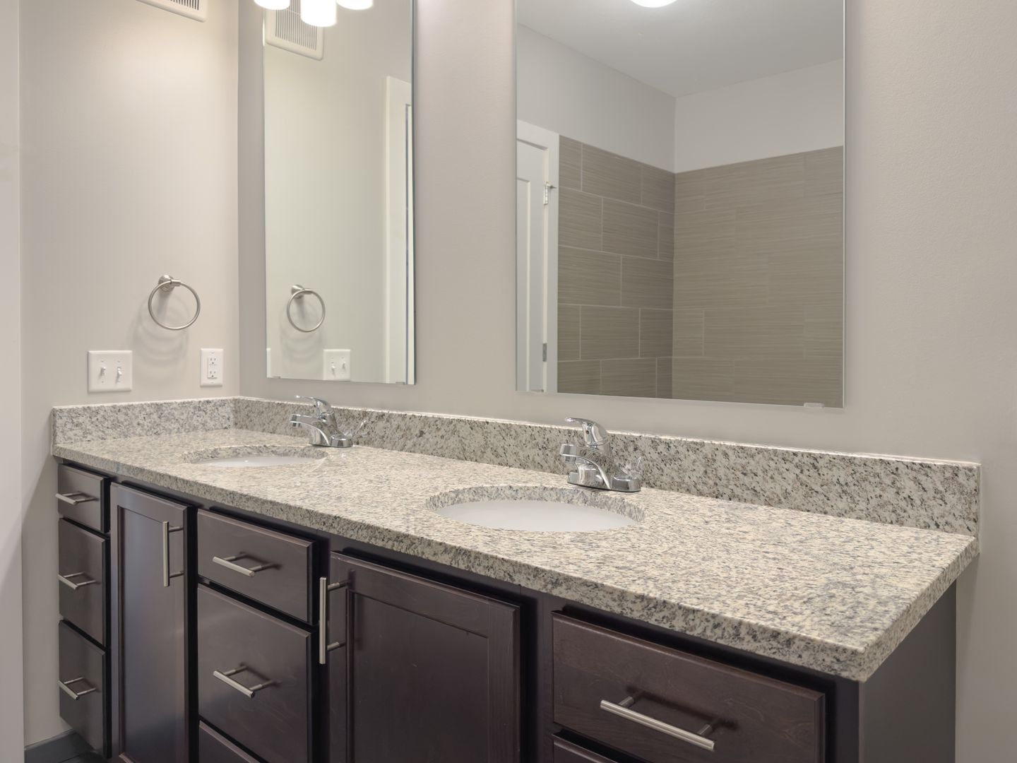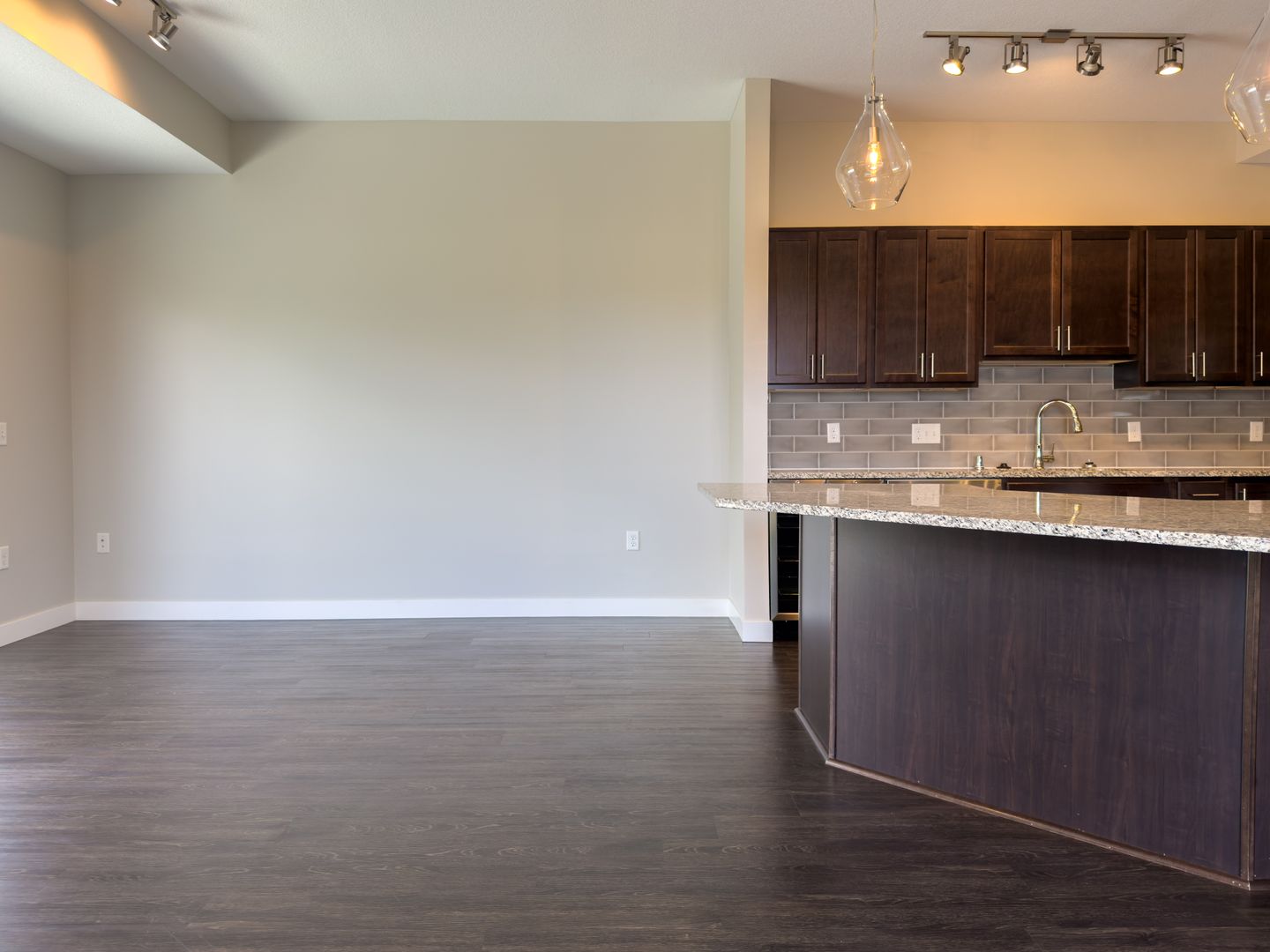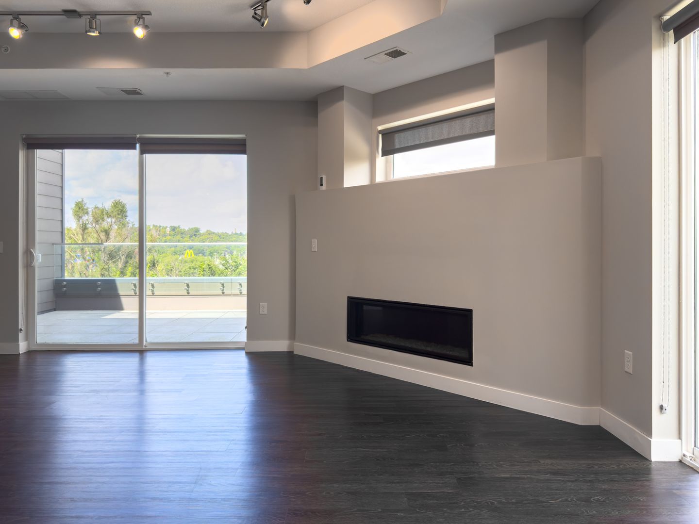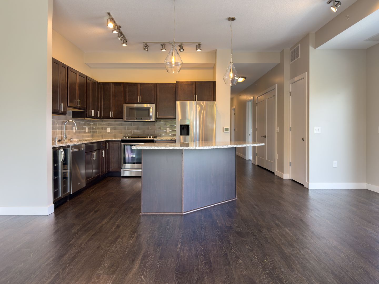The Summit is our largest penthouse, boasting 1,575 square feet of luxury. This unit features beautiful wood cabinets, granite countertops, stainless steel appliances, a fireplace, a balcony off each bedroom, and a massive corner balcony with spectacular views.