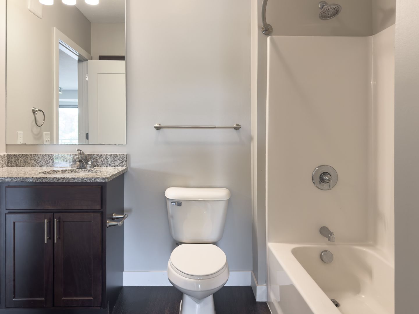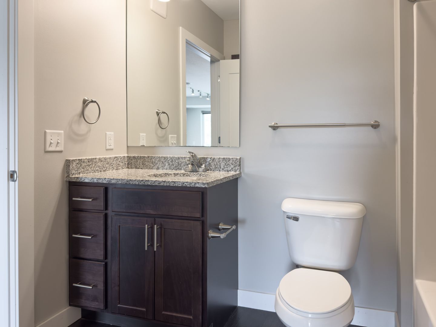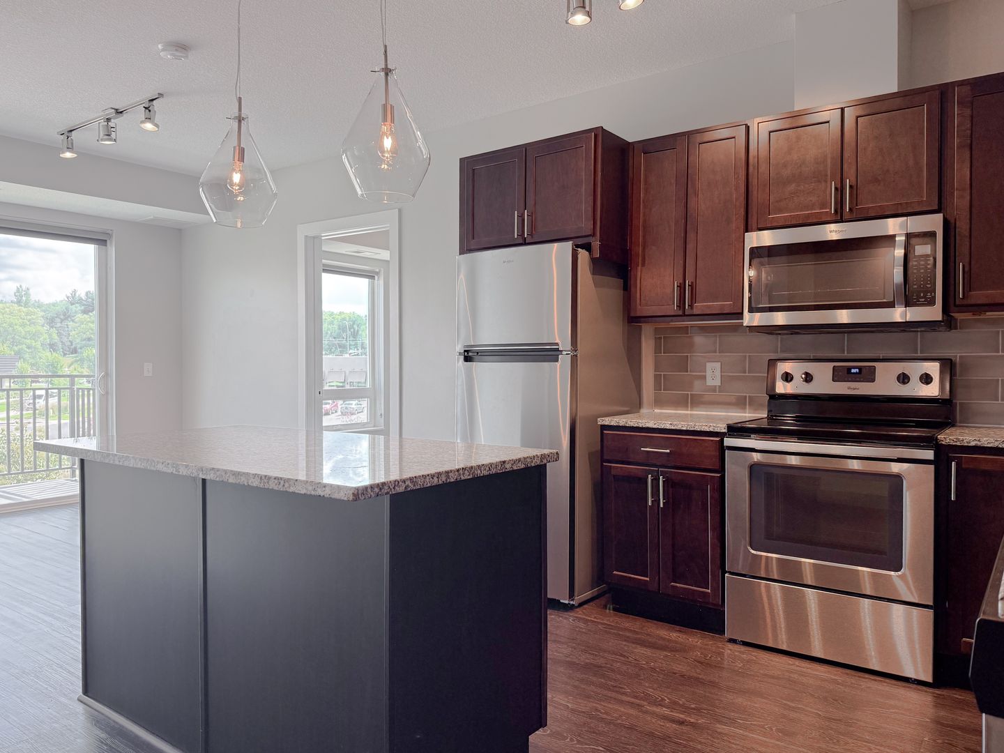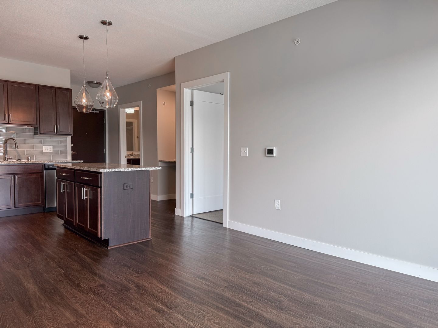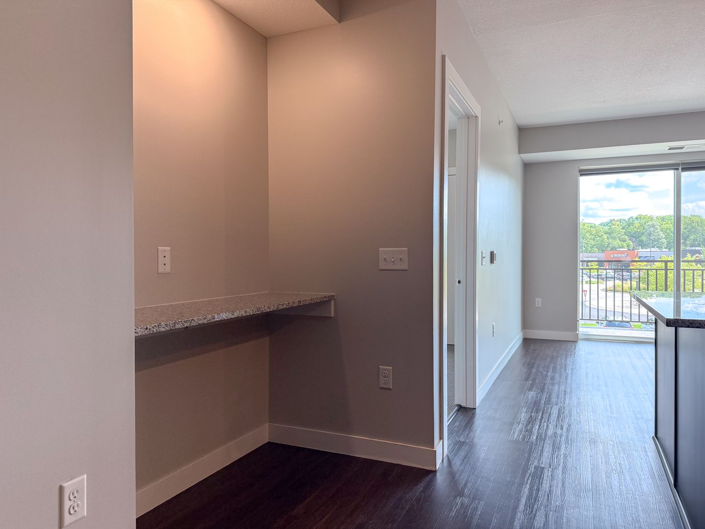 The Equinox is one of our expanded one-bedroom apartments with the addition of a den. Enjoy brown cabinets, a washer and dryer, and a built-in desk off the kitchen.