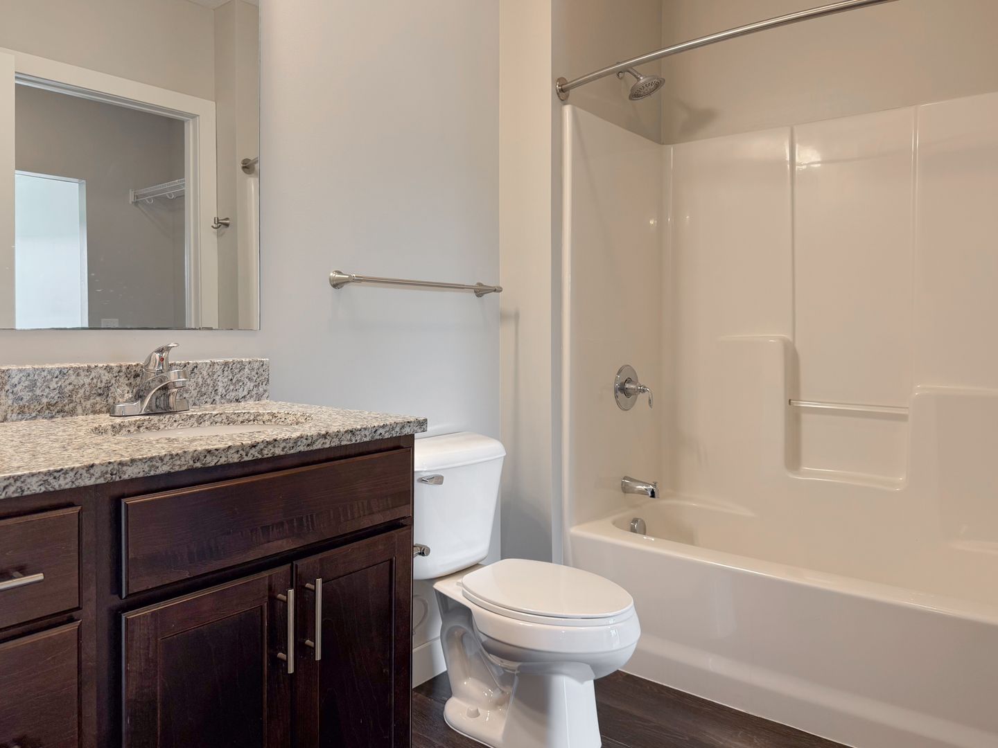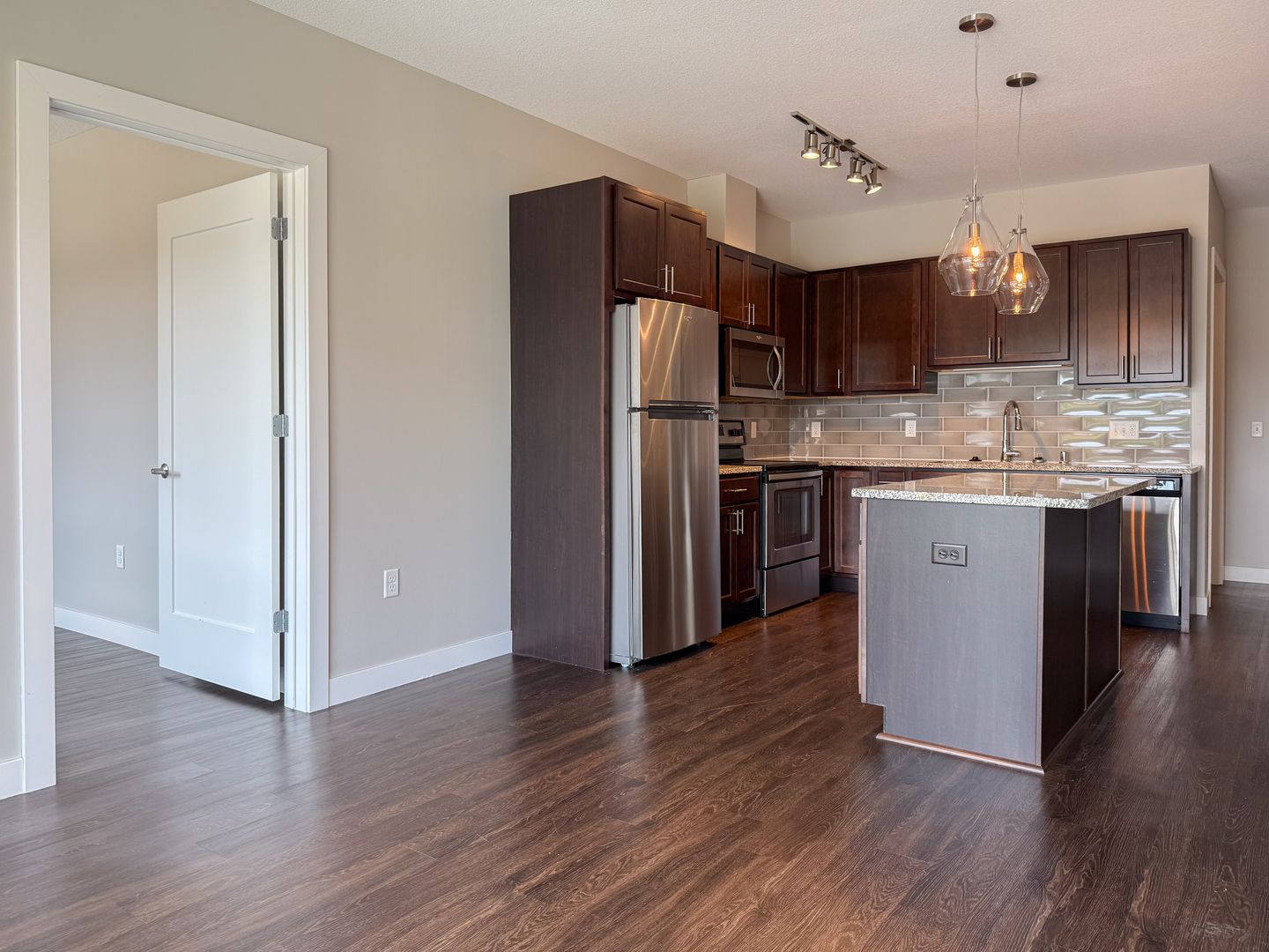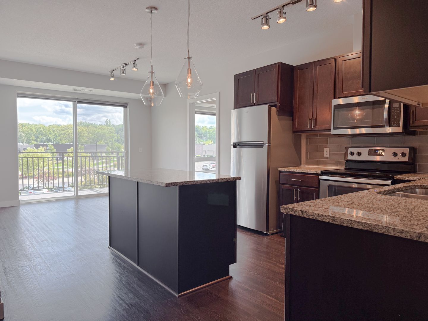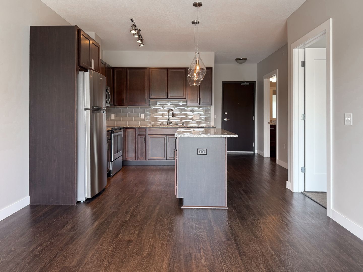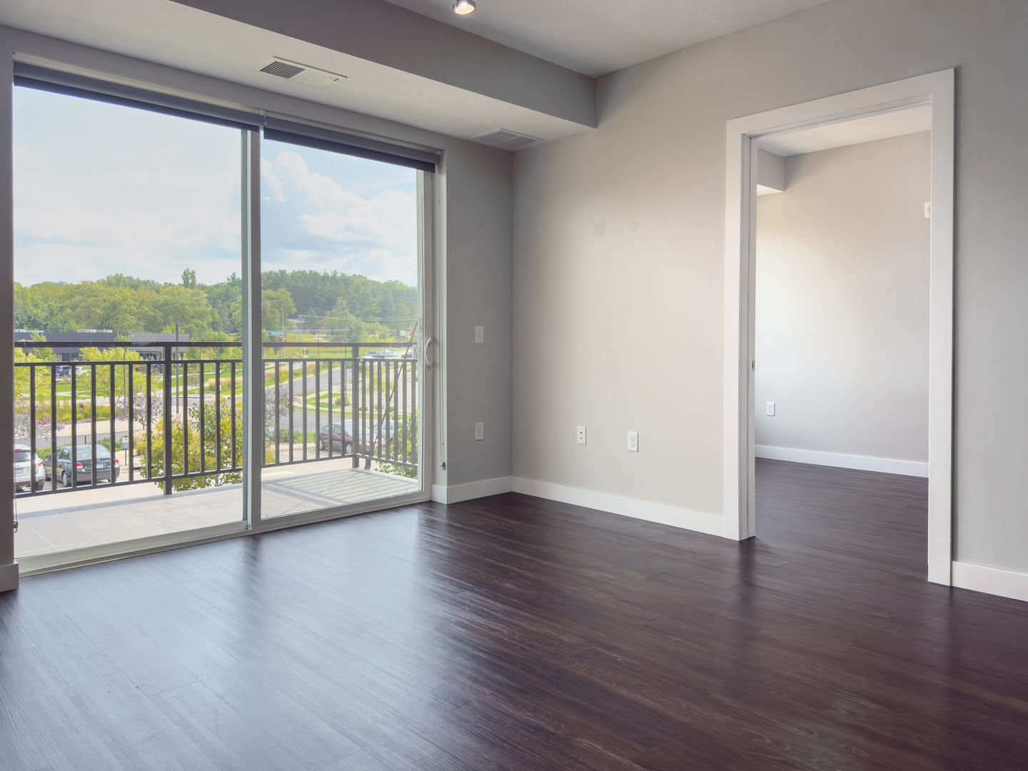 The Equinox is one of our expanded one-bedroom apartments with the addition of a den. Enjoy brown cabinets, a washer and dryer, and a built-in desk off the kitchen.